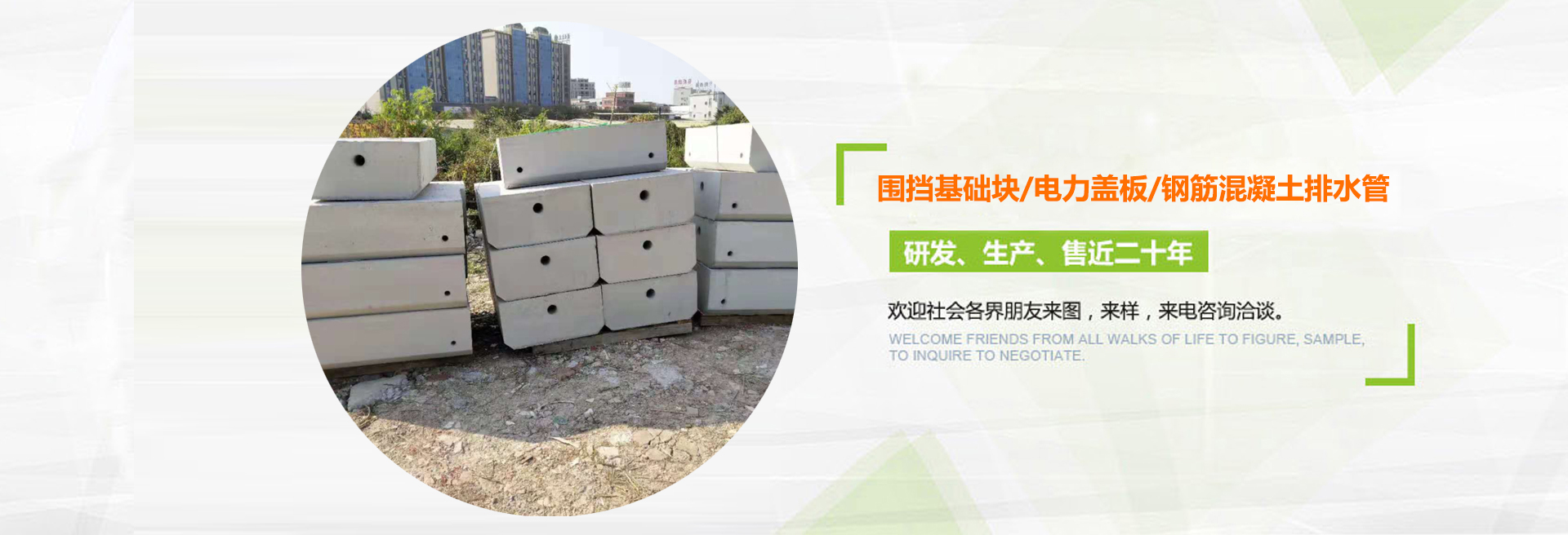 深圳富華環(huán)保建筑材料有限公司(簡(jiǎn)稱富華環(huán)保建筑材料)是一家專業(yè)研發(fā)生產(chǎn)與銷售水泥預(yù)制品的公司,從2001年開(kāi)始至今,主要生產(chǎn)的產(chǎn)品有:圍檔基礎(chǔ)塊、環(huán)保透水磚、河道護(hù)坡磚、停車場(chǎng)植草磚、電纜溝蓋板、預(yù)制井筒井座、立道牙、平道牙、鋼筋混凝土排水管、頂管、排煙道管、隔離敦、河道仿木欄桿等水泥預(yù)制構(gòu)件, 可針對(duì)每一個(gè)客戶的不同條件和要求,設(shè)計(jì)與生產(chǎn)各種水泥預(yù)制構(gòu)件。